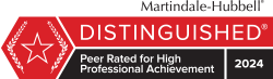 Distinguished: An excellent rating for a lawyer with some experience. This rating indicates the attorney is widely respected by their peers for high professional achievement and ethical standards.